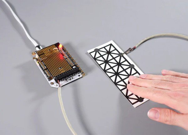 在電纜的另一端,你需要將導(dǎo)體連接到你想要連接的地方,例如鱷魚夾。重要的是:不要在電纜的這一端焊接漏電線。一旦你焊好了排水線并連接了你的傳感器,就給你的觸摸板通電。你的電動油漆傳感器墊應(yīng)該仍然工作,觸摸電纜不應(yīng)該從觸摸板產(chǎn)生任何反應(yīng)。