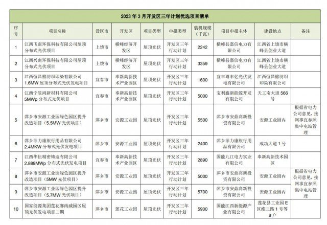 根據(jù)《江西省整體推進(jìn)開發(fā)區(qū)屋頂光伏建設(shè)三年行動計劃(2022-2024年)》(贛發(fā)改能源〔2022〕27號)與《江西省能源局關(guān)于進(jìn)一步做好整縣屋頂分布式光伏開發(fā)試點(diǎn)工作的通知》(贛能新能字〔2022〕29號)要求,江西省能源局組織開展了開發(fā)區(qū)三年行動計劃及整縣開發(fā)試點(diǎn)項目2023年3月競爭性優(yōu)選工作,江西省可再生能源信息中心對項目材料進(jìn)行合規(guī)性審查,省電網(wǎng)公司對電網(wǎng)消納材料進(jìn)行合規(guī)性審查,經(jīng)省能源局同意,現(xiàn)將優(yōu)選結(jié)果予以線上公布,請優(yōu)選勝出的項目落實優(yōu)選承諾按期建設(shè),并在可再生能源規(guī)劃項目庫管理系統(tǒng)中及時更新建設(shè)進(jìn)度。