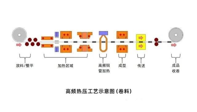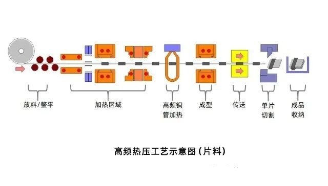 2、高頻熱壓工藝:高頻熱壓工藝主要是利用電磁感應(yīng)的原理,通過電感線圈將電磁感應(yīng)轉(zhuǎn)化為同頻率的磁場,然后作用于磁場中的金屬帶。利用渦流效應(yīng),在金屬帶中產(chǎn)生與磁場強(qiáng)度成比例的感應(yīng)旋轉(zhuǎn)電流(即渦流)。旋轉(zhuǎn)電流通過金屬帶中的電阻轉(zhuǎn)化為熱能,使金屬帶的溫度迅速上升,溶解薄膜,達(dá)到快速加熱的目的。
