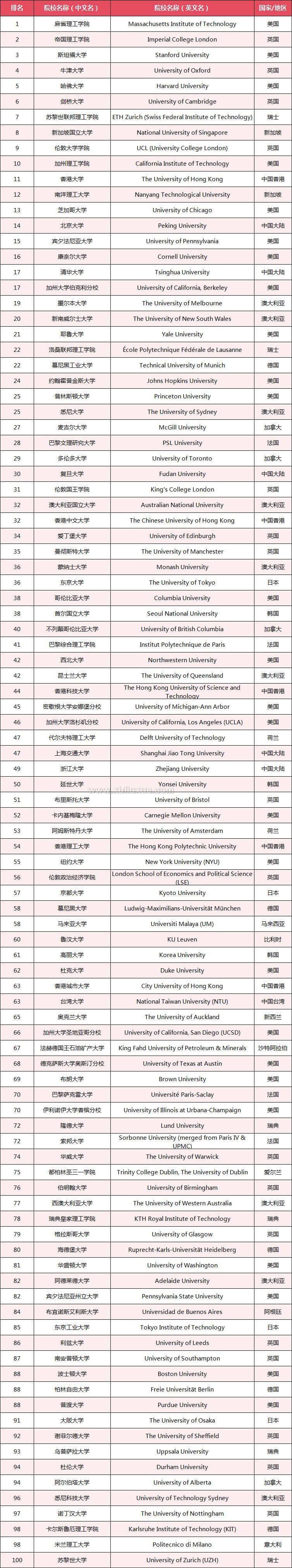 TOP10院校依然是英國和美國平起平坐,各有4所席位;