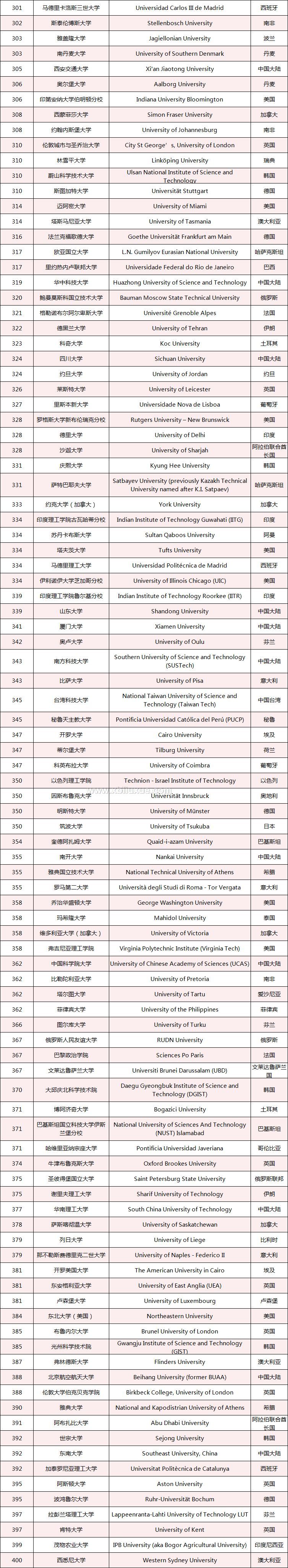 英國謝菲爾德大學(#92)和諾丁漢大學(#97)重新殺回前百強;