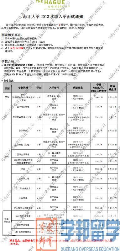 - 8馬鞍山留學(xué):2013荷蘭招生計(jì)劃(碩士 五)(232)