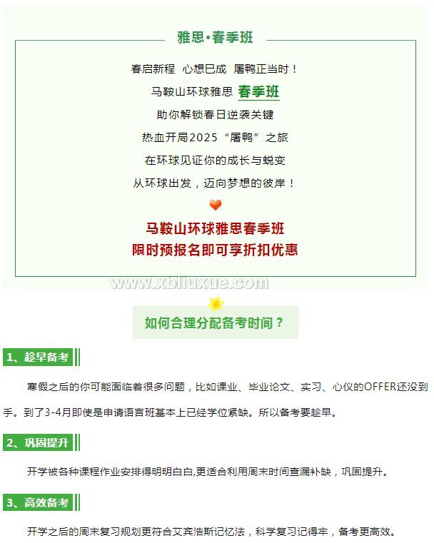 - 春?jiǎn)⑿鲁?心想巳成丨馬鞍山環(huán)球雅思春季班開始報(bào)名! [2025/2/12]