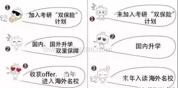 顧名思義就是留學(xué)和考研兩條路線同時(shí)進(jìn)行規(guī)劃。相較于國(guó)內(nèi)研究生的考核制,國(guó)外的研究生往往采用申請(qǐng)制,同學(xué)們?cè)趥鋺?zhàn)考研的同時(shí),可以申請(qǐng)國(guó)外優(yōu)質(zhì)院校的研究生。在備考同時(shí),有機(jī)會(huì)直接收獲offer。