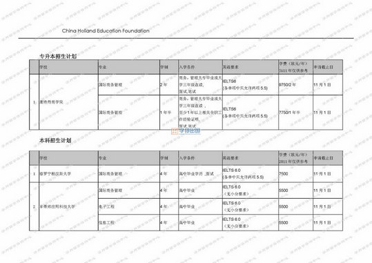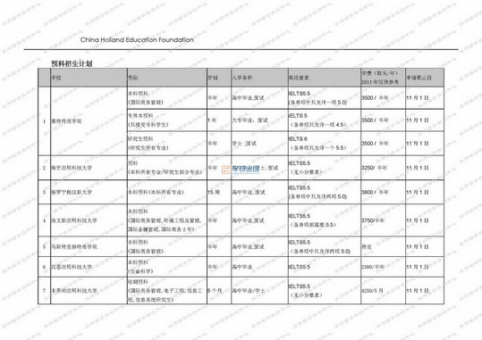 - 8馬鞍山留學:荷蘭院校2011年全年招生計劃表20101103版本 [400]