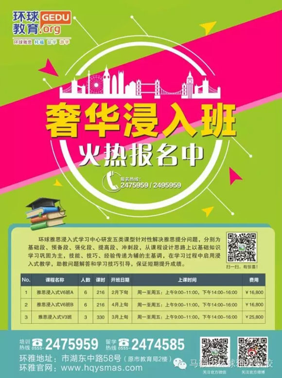 2016馬鞍山環(huán)球雅思春季班&奢華浸入班熱招中
