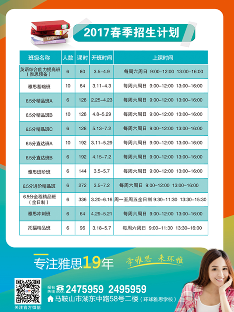 - 春?jiǎn)⑿鲁?心想巳成丨馬鞍山環(huán)球雅思春季班開始報(bào)名! [2025/5/9]